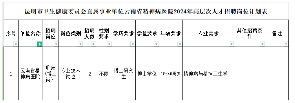 云南省精神病醫(yī)院2024年面向社會公開招聘高層次人才的公告