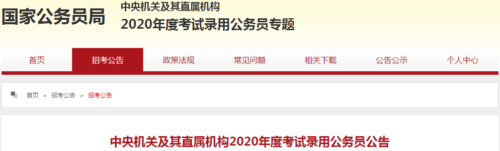 各招錄機關的招考人數(shù)、具體職位、考試類別、資格條件等詳見《中央機關及其直屬機構2020年度考試錄用公務員招考簡章》(以下簡稱《招考簡章》),報考者在2019年10月14日后可以通過中央機關及其直屬機構2020年度考試錄用公務員專題網(wǎng)站查閱。